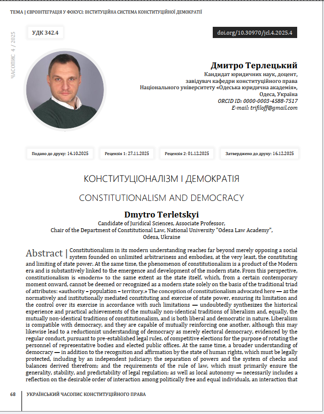 Ключові слова: конституціоналізм, конституція, сучасна держава, лібералізм, демократія